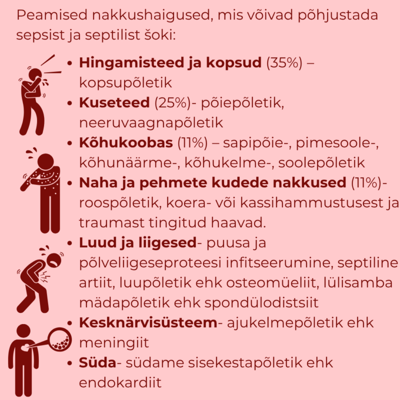Peamised nakkushaigused, mis põhjustavad sepsist ja septilist soki.